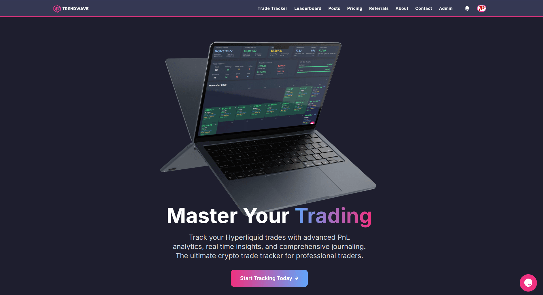 Trendwave is the premier Hyperliquid trading dashboard on the web. The most expansive data and analytics for Hyperliquid DEX traders. Built with Next.js, MongoDB, and Contentful.